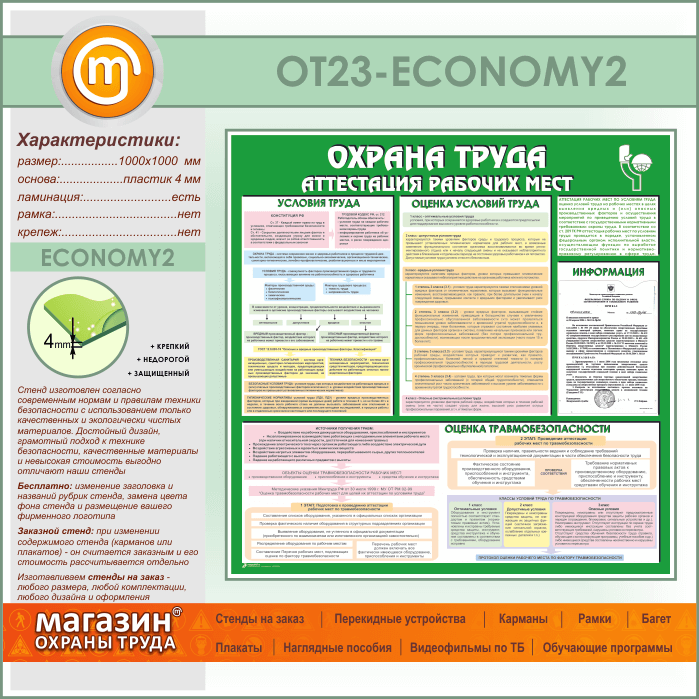 Стенд «Охрана труда. Аттестация рабочих мест» с карманом (OT-23-ECONOMY2)