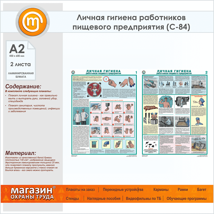 Плакаты «Личная гигиена работников пищевого предприятия» (С-84, ламинированная бумага, А2, 2 листа)