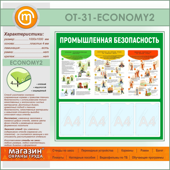Стенд «Промышленная безопасность» с 4 карманами (OT-31-ECONOMY2)
