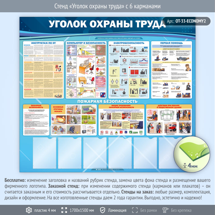 Стенд «Уголок охраны труда» с 6 карманами (OT-33-ECONOMY2)