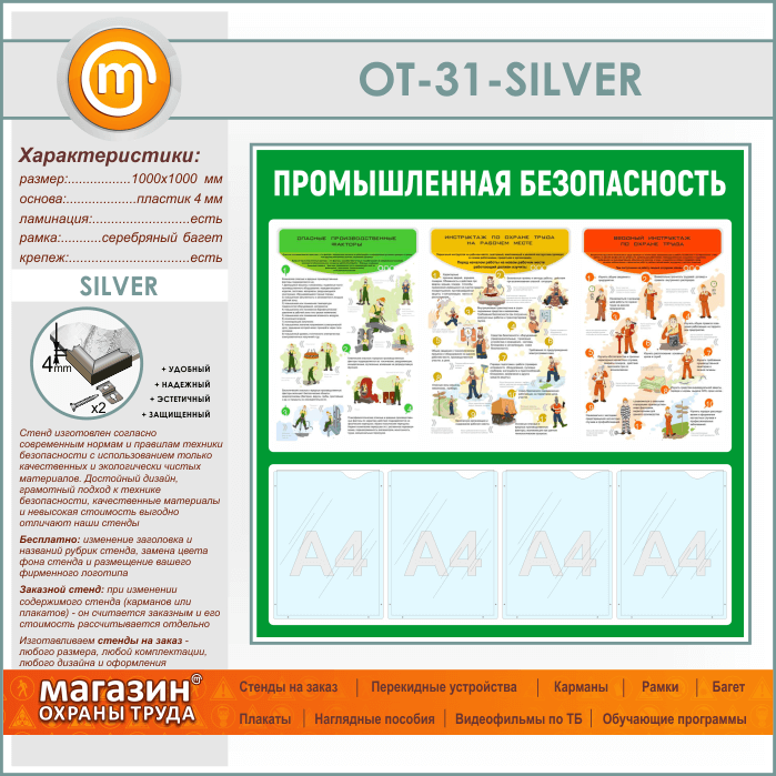 Стенд «Промышленная безопасность» с 4 карманами (OT-31-SILVER)