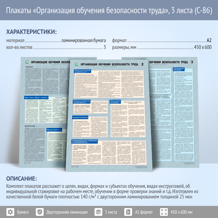 Плакаты «Организация обучения безопасности труда» (С-86, ламинированная бумага, А2, 3 листа)