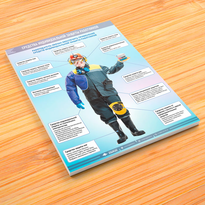Плакат «Средства индивидуальной защиты работников» изготавливается в А2 формате (точный размер – 450х600 мм)