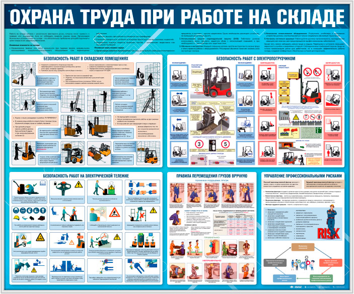 Стенд «Охрана труда при работе на складе» (OT-39)содержит ключевые рекомендации по безопасному выполнению погрузочно-разгрузочных работ, эксплуатации электропогрузчиков и электрических тележек, а также правила перемещения грузов вручную. Особое внимание уделено управлению профессиональными рисками и созданию безопасной рабочей среды. Стенд помогает минимизировать риски травматизма, обеспечить выполнение требований охраны труда и повысить культуру безопасности на складе.