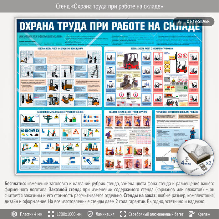 Стенд «Охрана труда при работе на складе» (OT-39-SILVER)