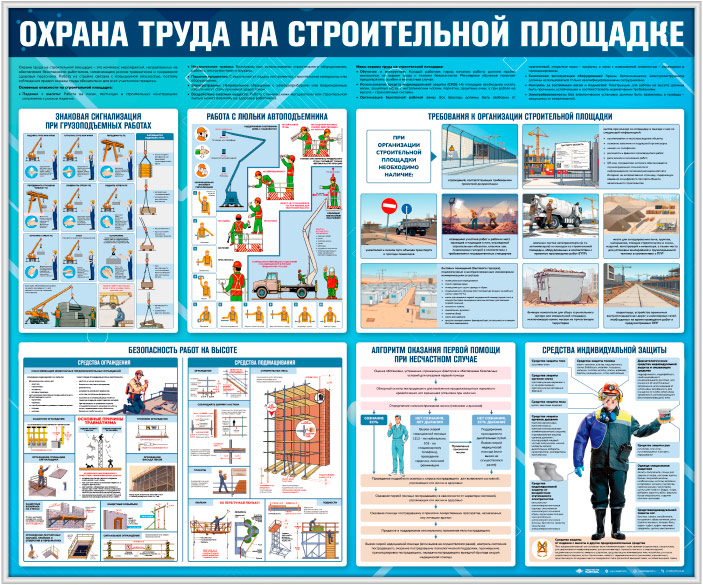 Стенд «Охрана труда на строительной площадке» (OT-40)направлен на обеспечение безопасности при выполнении строительных работ. Охватывает ключевые аспекты организации строительной площадки, безопасного выполнения работ на высоте и с использованием автоподъемников. Включает рекомендации по применению средств индивидуальной защиты, знаковой сигнализации при грузоподъемных работах и алгоритмы оказания первой помощи. Стенд помогает снизить риски травматизма, соблюсти нормы охраны труда и создать безопасные условия для работников.