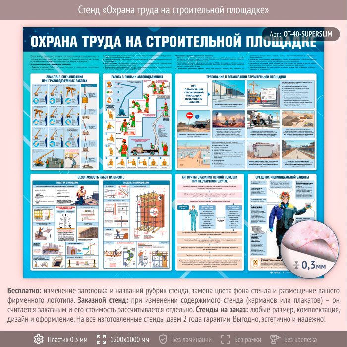 Стенд «Охрана труда на строительной площадке» (OT-40-SUPERSLIM)