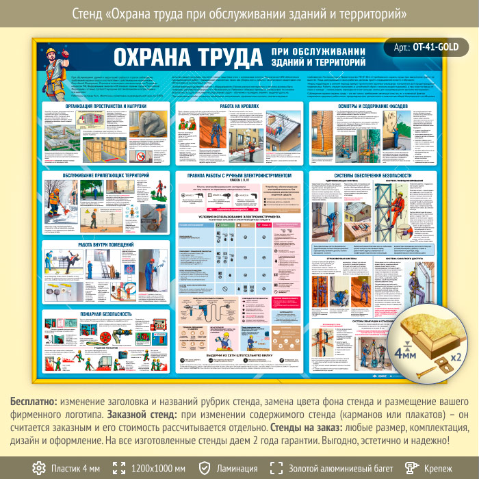 Стенд «Охрана труда при обслуживании зданий и территорий» (OT-41-GOLD)