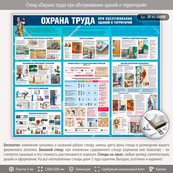 Стенд «Охрана труда при обслуживании зданий и территорий» (OT-41-SILVER)