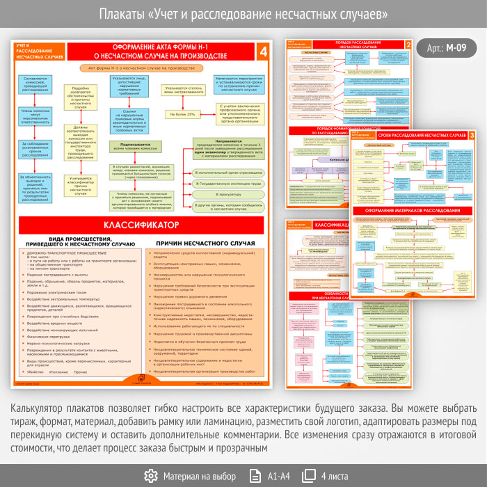 Плакаты «Учет и расследование несчастных случаев» (М-09, 4 листа)
