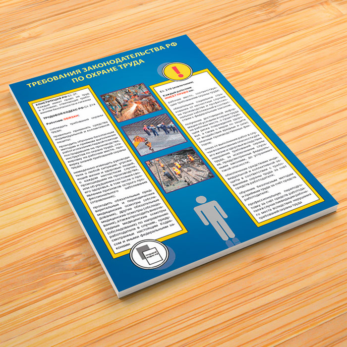 - Плакат «Требования законодательства РФ по охране труда» – конституция и трудовой кодекс – права и обязанности работника