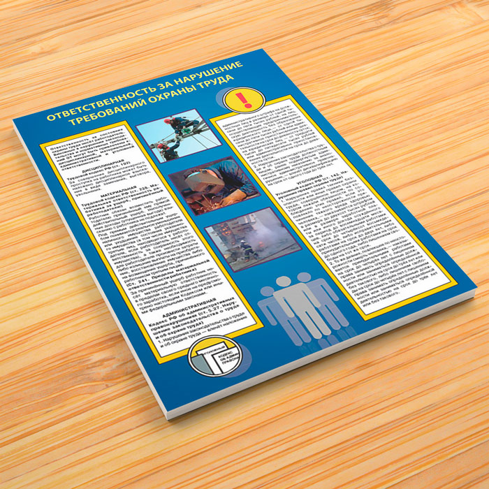 - Плакат «Ответственность за нарушение требований охраны труда» – дисциплинарная, материальная, административная и уголовная ответственность