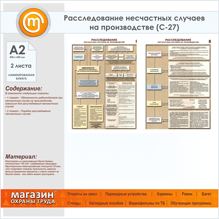 Плакаты «Расследование несчастных случаев на производстве» (С-27, ламинированная бумага, А2, 2 листа)