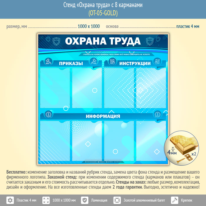 Стенд «Охрана труда» с 8 карманами (OT-05-GOLD)