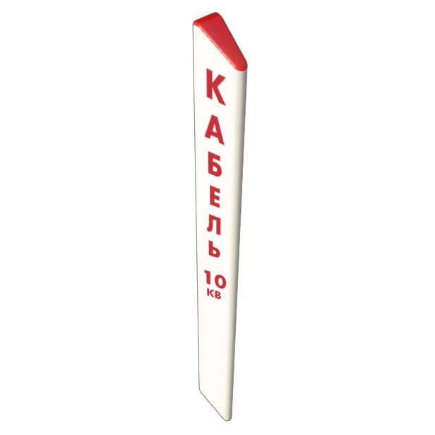 Столбик СОЭ для обозначения электропередач и кабелей связи с надписью КАБЕЛЬ, высотой 2000 мм представляет из себя сигнальный столбик треугольного сечения белого цвета с красной крышкой. «Тело» имеет белый цвет, обладает ударопрочной вязкостью, достаточной для обеспечения его сохранности при выполнении работ по его содержанию (мойка, замена световозвращателей, и т.п.). Изготовлен из высококачественного полиэтилена, имеет травмобезопасную конструкцию.