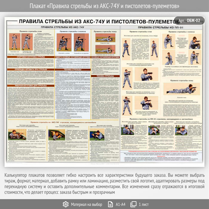 Плакат «Правила стрельбы из АКС-74У и пистолетов-пулеметов» (ОБЖ-02, 1 лист)