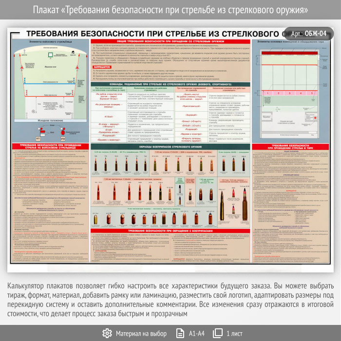 Плакат «Требования безопасности при стрельбе из стрелкового оружия» (ОБЖ-04, 1 лист)
