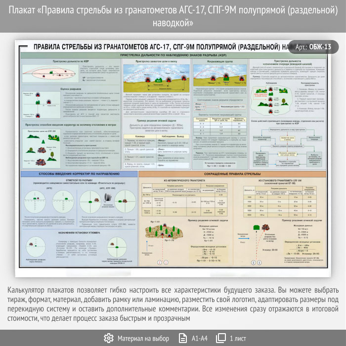 Плакат «Правила стрельбы из гранатометов АГС-17, СПГ-9М полупрямой (раздельной) наводкой» (ОБЖ-13, 1 лист)