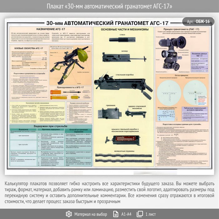 Плакат «30-мм автоматический гранатомет АГС-17» (ОБЖ-16, 1 лист)