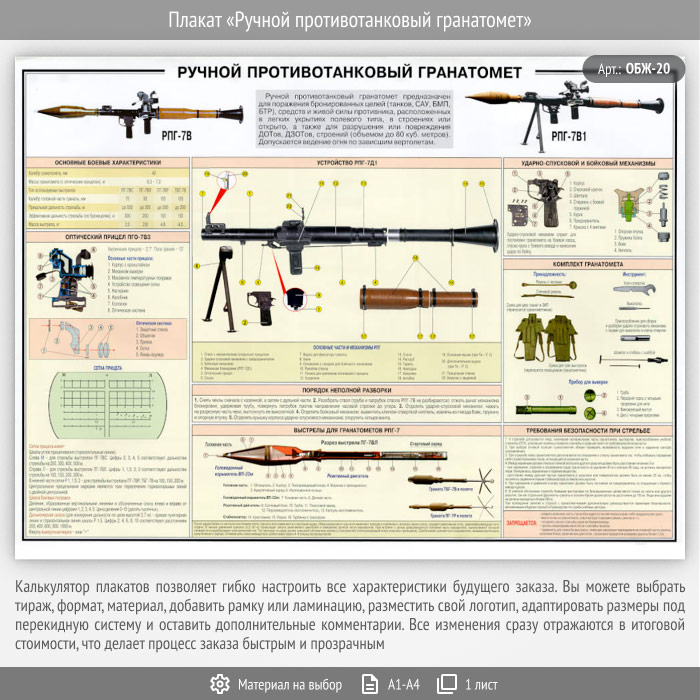Плакат «Ручной противотанковый гранатомет» (ОБЖ-20, 1 лист)