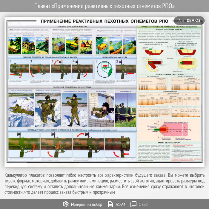 Плакат «Применение реактивных пехотных огнеметов РПО» (ОБЖ-23, 1 лист)