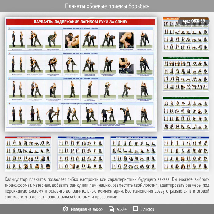 Плакаты «Боевые приемы борьбы» (ОБЖ-39, 8 листа)