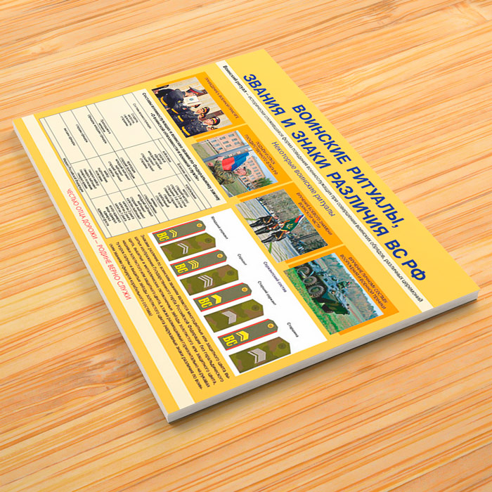 - Плакат «Воинские ритуалы, звания и знаки различия ВС РФ» – исторически сложившаяся форма поведения военнослужащих при совершении воинских обрядов и различных церемоний