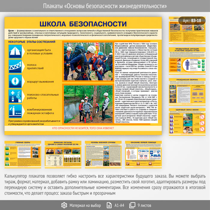 - Плакат «Школа безопасности» – мероприятия для повышения уровня знаний личной и общественной безопасности