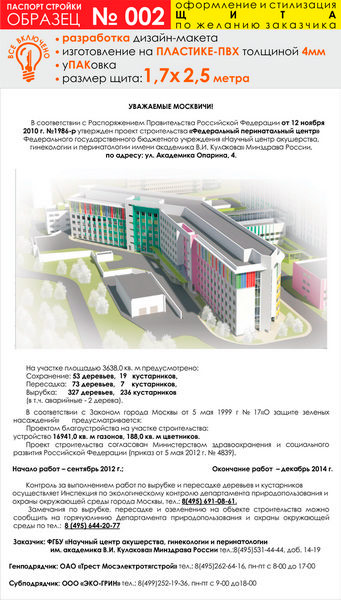 Паспорт стройки, образец № 2 (пластик 4 мм, 1700х2500 см)
