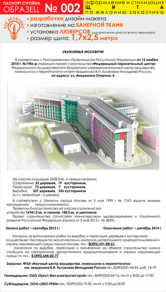 Паспорт стройки, образец № 2 (баннерная ткань, 1700х2500 см)