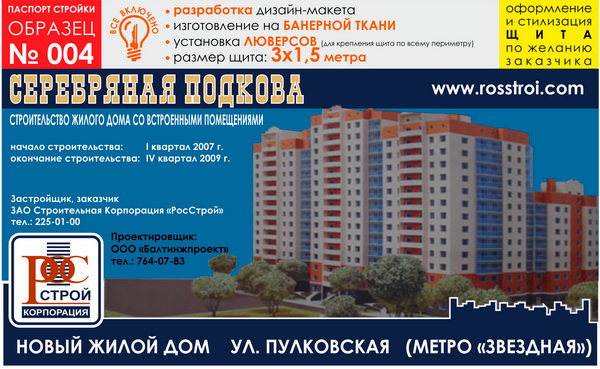 Паспорт стройки, образец № 4 (баннерная ткань, 3000х1500 cм)