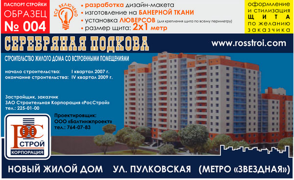 Паспорт стройки, образец № 4 (баннерная ткань, 2000х1000 cм)