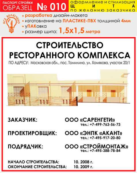 Паспорт стройки, образец № 10 (пластик 4 мм, 1500х1500 cм)