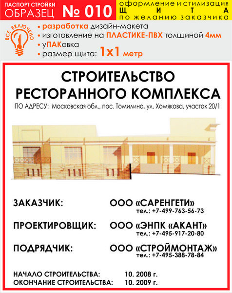 Паспорт стройки, образец № 10 (пластик 4 мм, 1000х1000 cм)