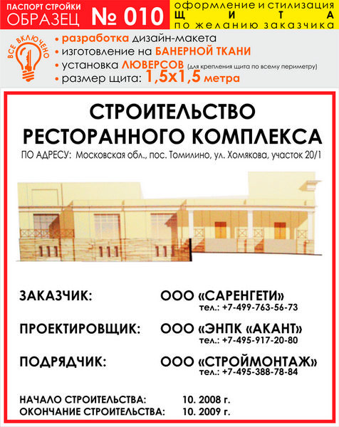 Паспорт стройки, образец № 10 (баннерная ткань, 1500х1500 cм)