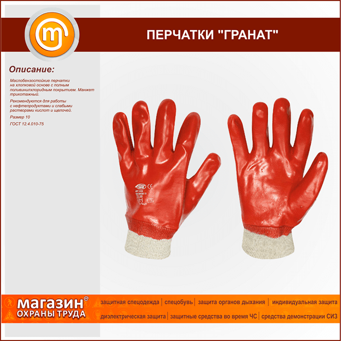 Перчатки «Гранат» (покрытие ПВХ) | Перчатки «Гранат» (покрытие ПВХ) |