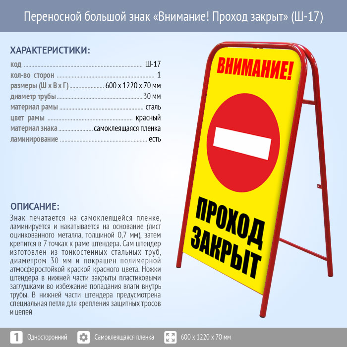 Переносной знак «Внимание! Проход закрыт» (Ш-17)