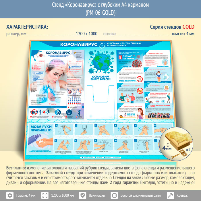 Стенд «Коронавирус» с глубоким А4 карманом (PM-06-GOLD)