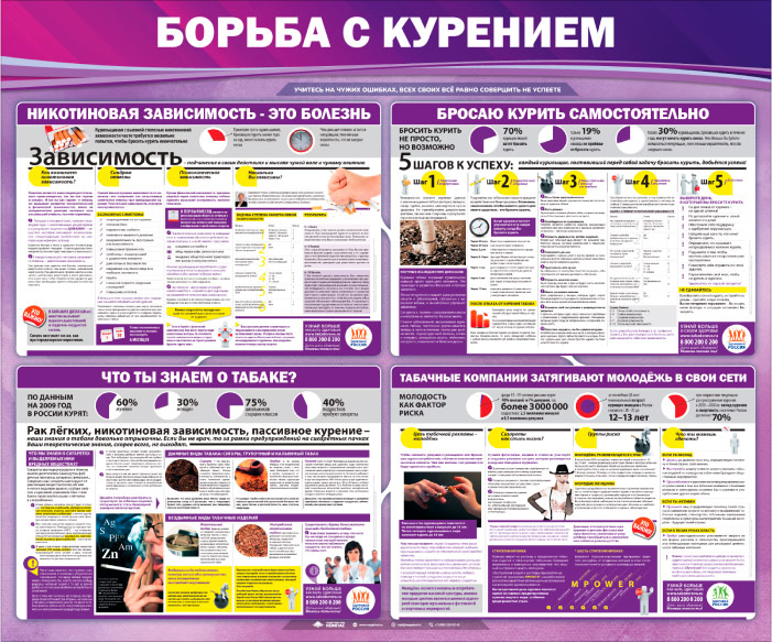 Стенд «Борьба с курением» (PM-07) содержит информацию по борьбе с курением.