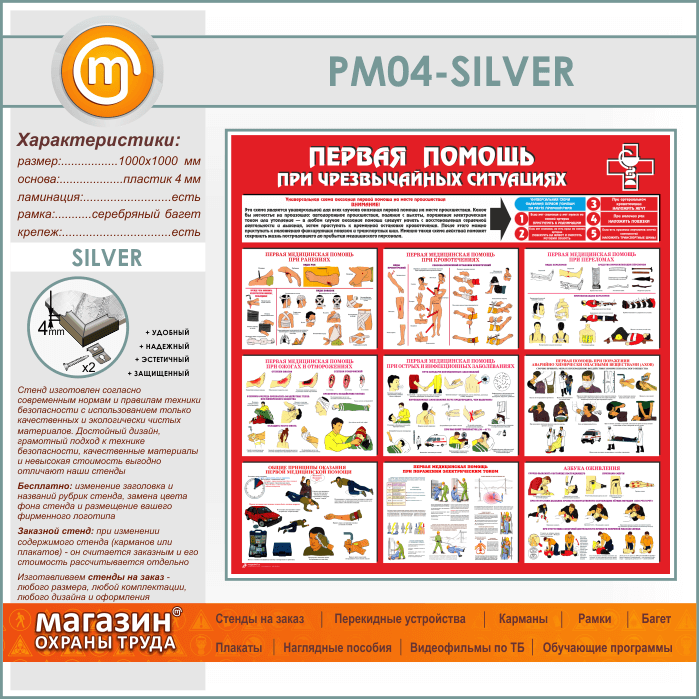 Стенд «Первая помощь при чрезвычайных ситуациях» (PM-04-SILVER)