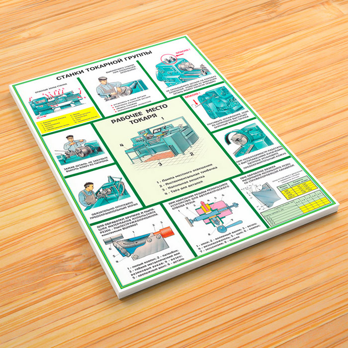 - Плакат «Станки токарной группы» – рабочее место токаря и техника безопасности