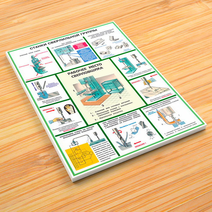 - Плакат «Станки сверлильной группы» – рабочее место сверловщика и техника безопасности при выполнении работ