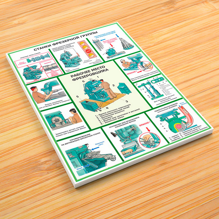 - Плакат «Станки фрезерной группы» – рабочее место фрезеровщика и безопасность при выполнении работ