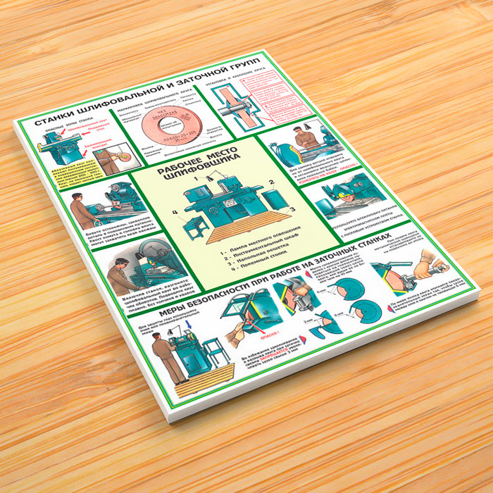 - Плакат «Станки шлифовальной и заточной групп» – рабочее место шлифовщика, меры безопасности при работе на заточных станках