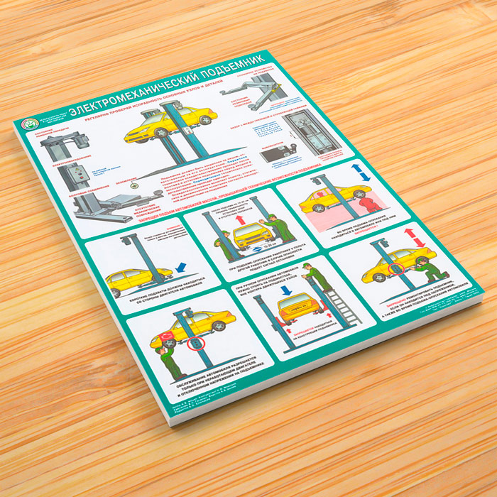 Плакат «Безопасность в авторемонтной мастерской. Электромеханический подъемник» – достойное качество и полезная информация по приемлемой цене