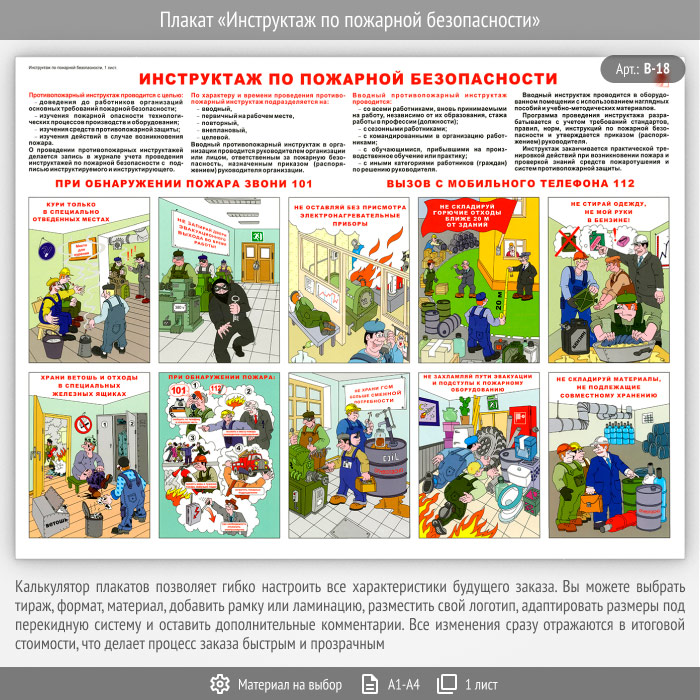 Плакат «Инструктаж по пожарной безопасности» (В-18, 1 лист)