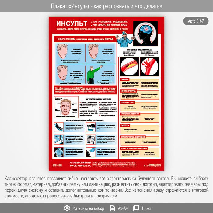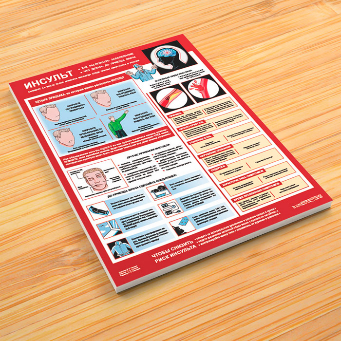 Плакат «Инсульт - как распознать и что делать» – достойное качество и полезная информация по приемлемой цене