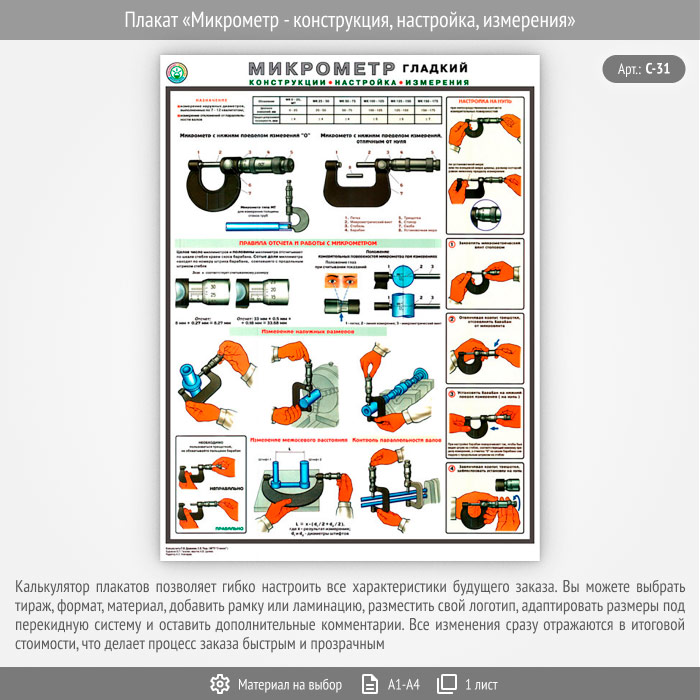 Плакат «Микрометр - конструкция, настройка, измерения» – достойное качество и полезная информация по приемлемой цене