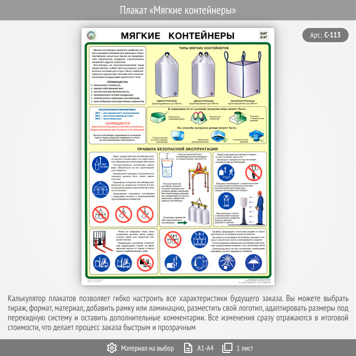 Плакат «Мягкие контейнеры» – достойное качество и полезная информация по приемлемой цене