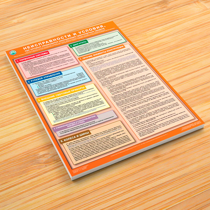 Плакат «Неисправности и условия, при которых запрещена эксплуатация транспортных средств» – достойное качество и полезная информация по приемлемой цене